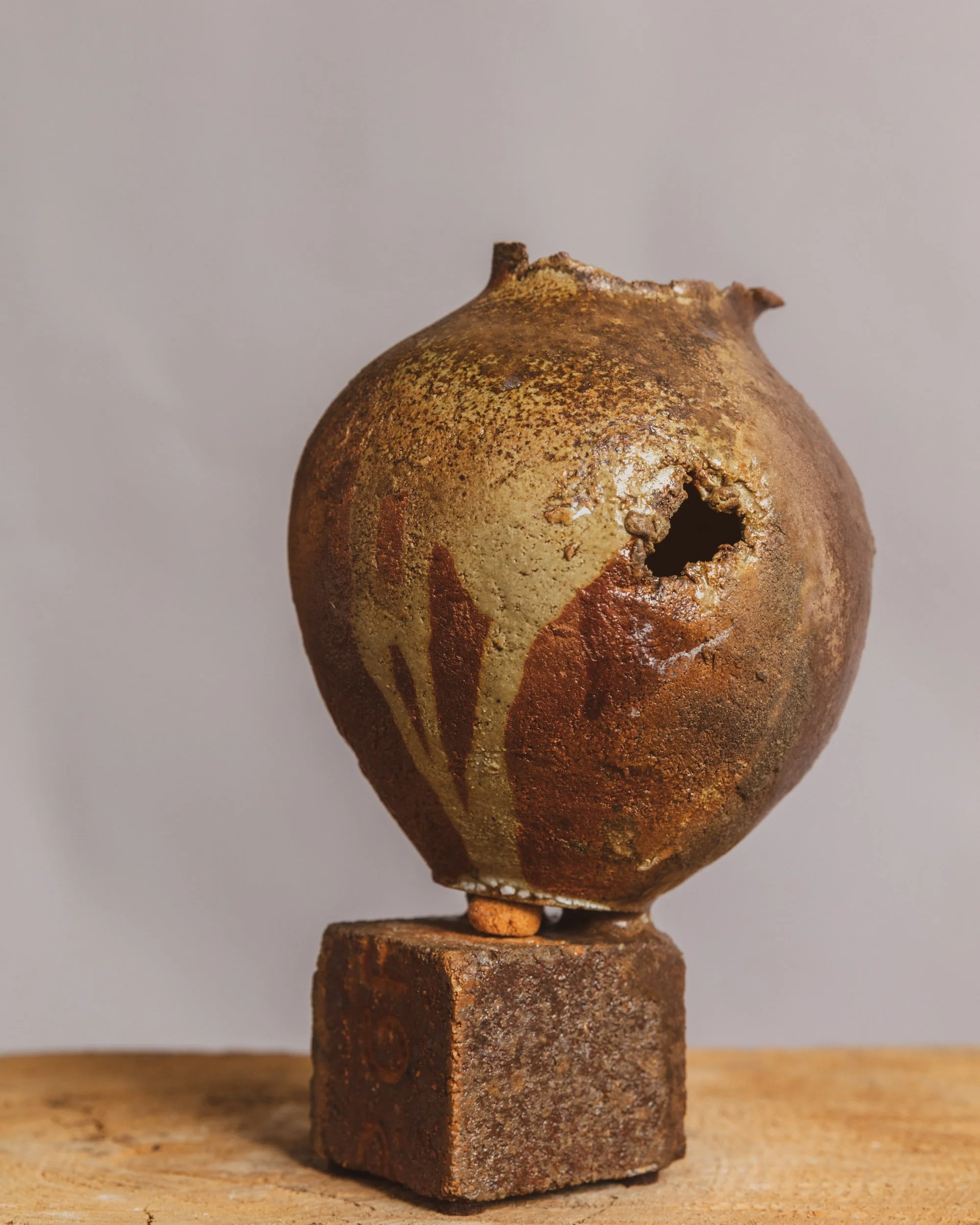 #48 Wood fired Vessel on a pedestal No. 2, 10.3"H x 6.3" W, $3,600