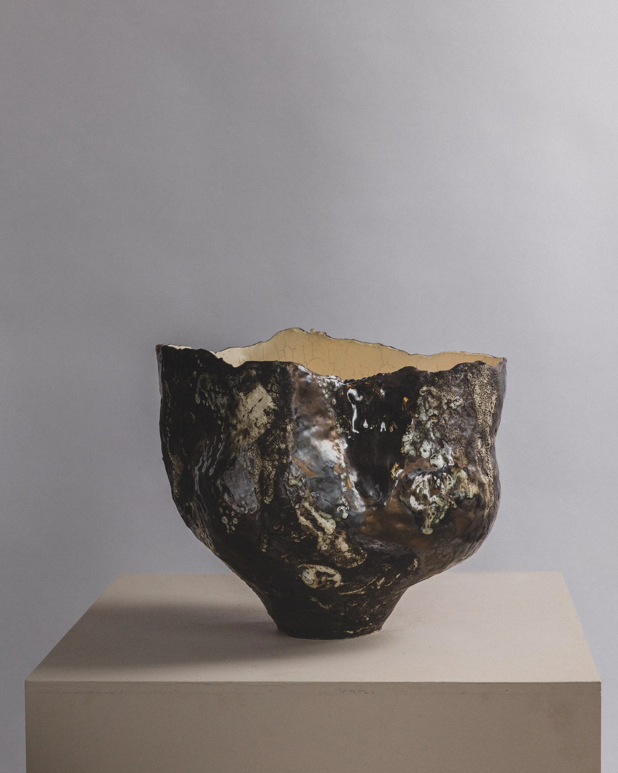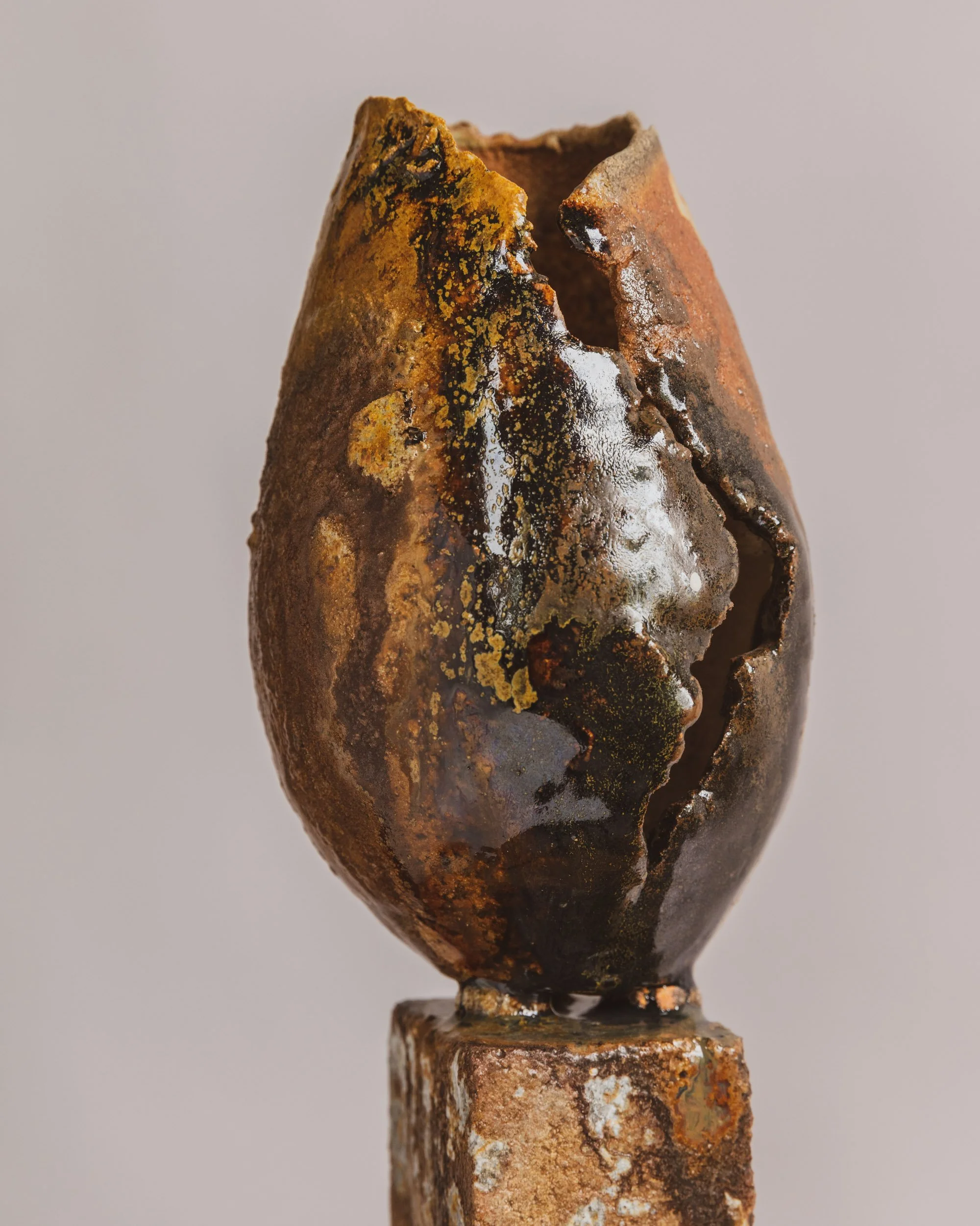 #01 🟡 Limitless Boundaries No. 1, 2025, 19"H x 13"D Sculpture clay with metallic glaze. $10,000