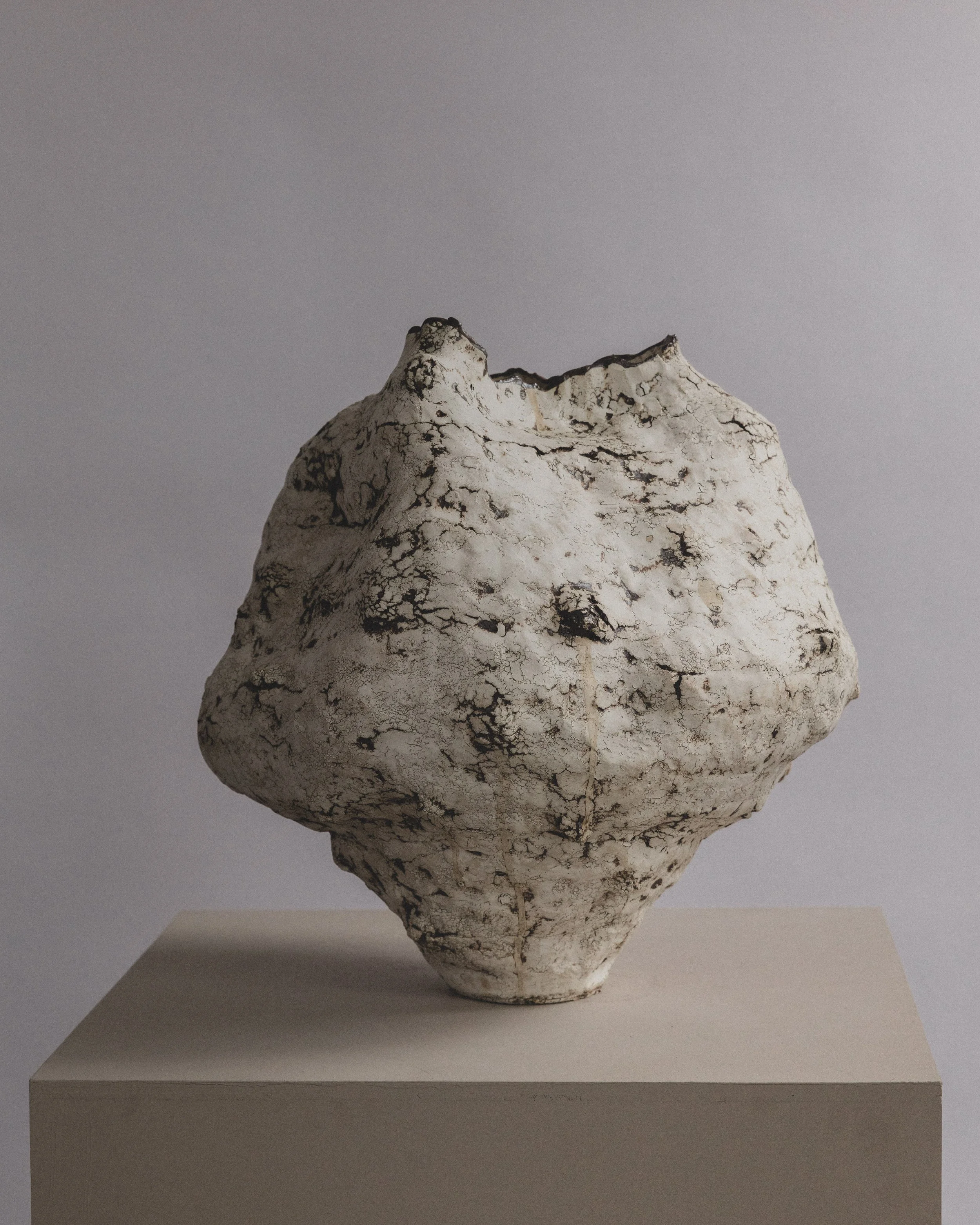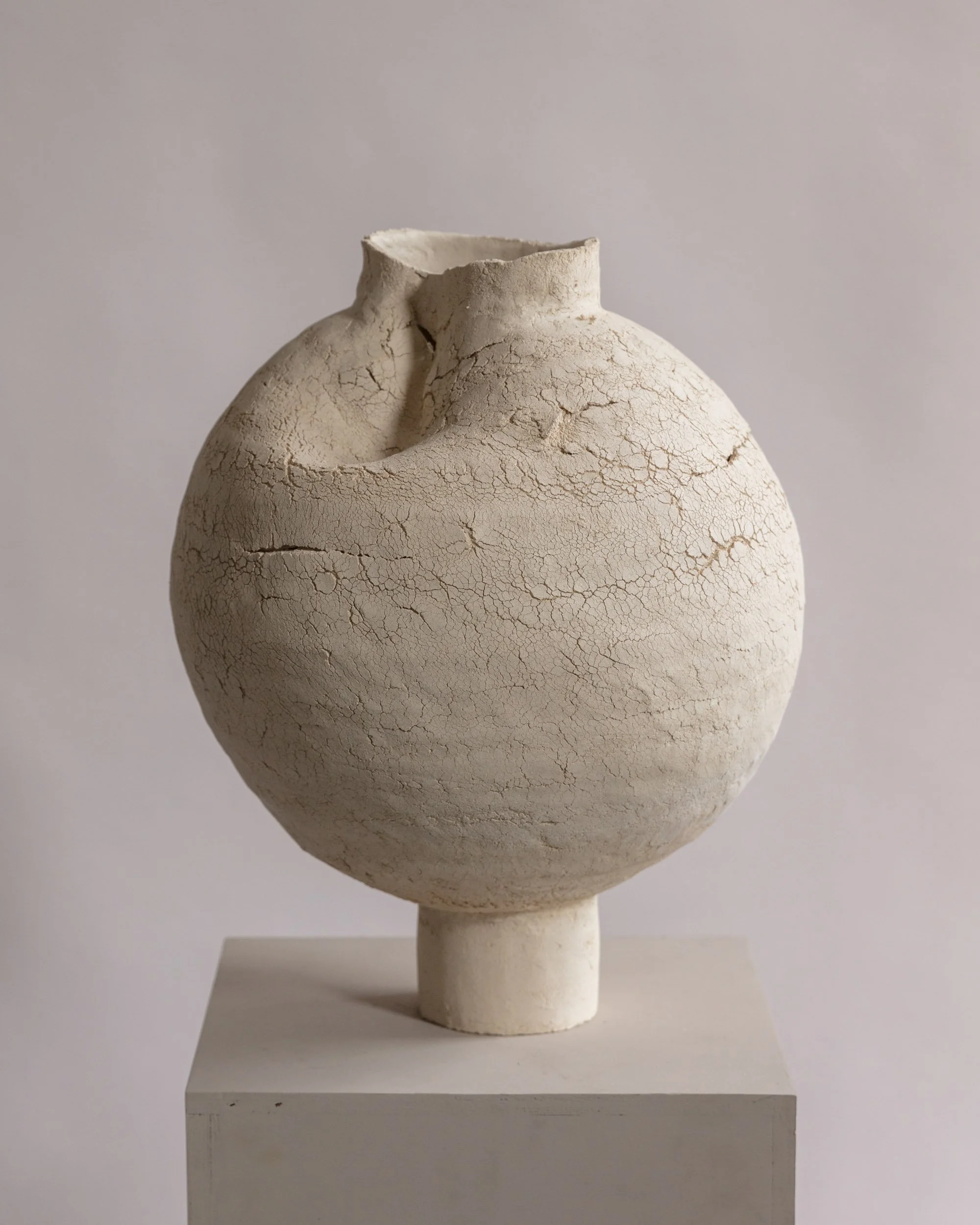 #43 Moon Jar, 11" H x 10"W, Sculpture clay, porcelain slip. $5,500